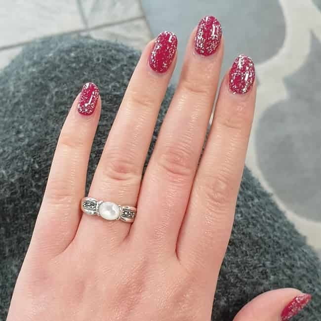 Wzór pierścionka jest raczej nowoczesny. Kolor masy perłowej i markazytów doskonale koresponduje z kolorem srebra, tworząc bardzo ładną kompozycję.