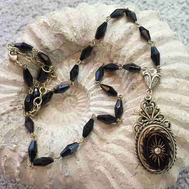 Naszyjnik nawiązuje do stylu tzw. biżuterii żałobnej, który miał swój początek po śmierci księcia Alberta w 1861 roku. Wtedy to królowa Wiktoria, pogrążona w żałobie, zaczęła nosić biżuterię w czarnym kolorze o sentymentalnym, osobistym charakterze, co z biegiem czasu stało się bardziej powszechne, a nawet modne i biżuteria w tym stylu stała się chętnie noszona, tracąc swoje pierwotne znaczenie, stając się nostalgiczną, romantyczną i tajemniczą. Najbardziej charakterystyczną cechą tej biżuterii wiktoriańskiej jest kolor czarny.